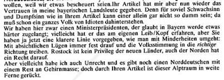 Aber vielleicht habe ich auch Unrecht und es gibt noch einen Norddeutschen mit einem Rest an Gehirnmasse; doch durch ihren Artikel ist dieser Alptraum in weite Ferne gerückt.